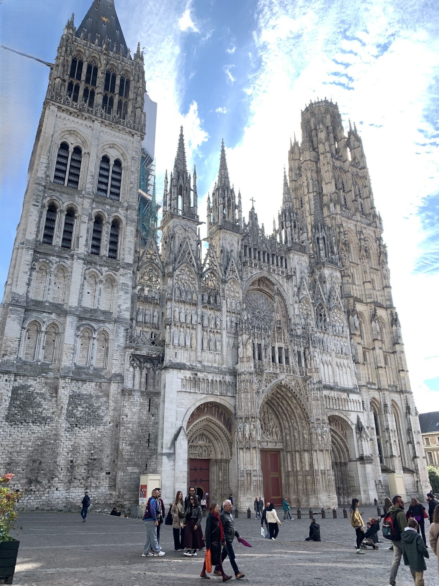 La cathédrale Notre-Dame, immortalisée par Claude Monet dans sa célèbre série de tableaux, domine majestueusement le cœur historique. Sa façade flamboyante, véritable dentelle de pierre, change de visage au gré de la lumière, tout comme l’avait capturé le maître impressionniste. Non loin, le Gros-Horloge du XIVe siècle, enjambe la rue la plus emblématique de la ville.